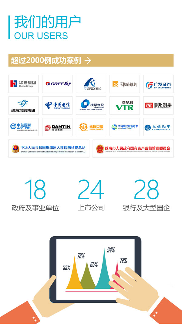 >> 擁有超過2000例的成功案例。包括國資委響應式網站項目,水務集團/中國聯通VPN項目,希格瑪綜合布線系統、機房建設、紅外監控系統、企業無線覆蓋系統、智能廣播系統、智能一卡通統、機房防雷系統項目,潤都桌面云項目,華潤銀行防火墻項目、斗門旅游局無線wifi項目,安聯銳視備份一體機項目等。