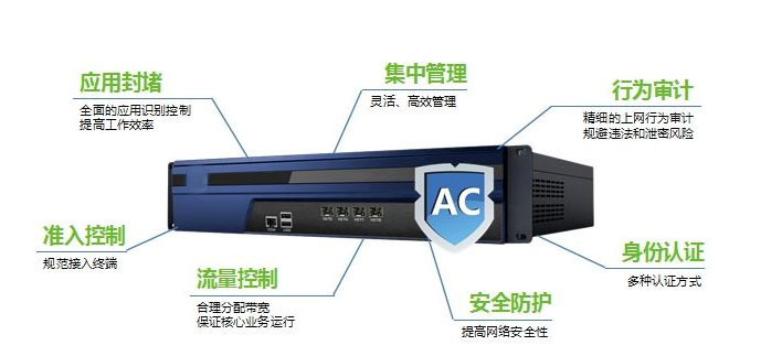 具備專業的行為管理、應用控制、流量管控、信息管控、非法熱點管控、行為分析、無線網絡管理等功能,真正做到全網全終端統一上網行為管理。